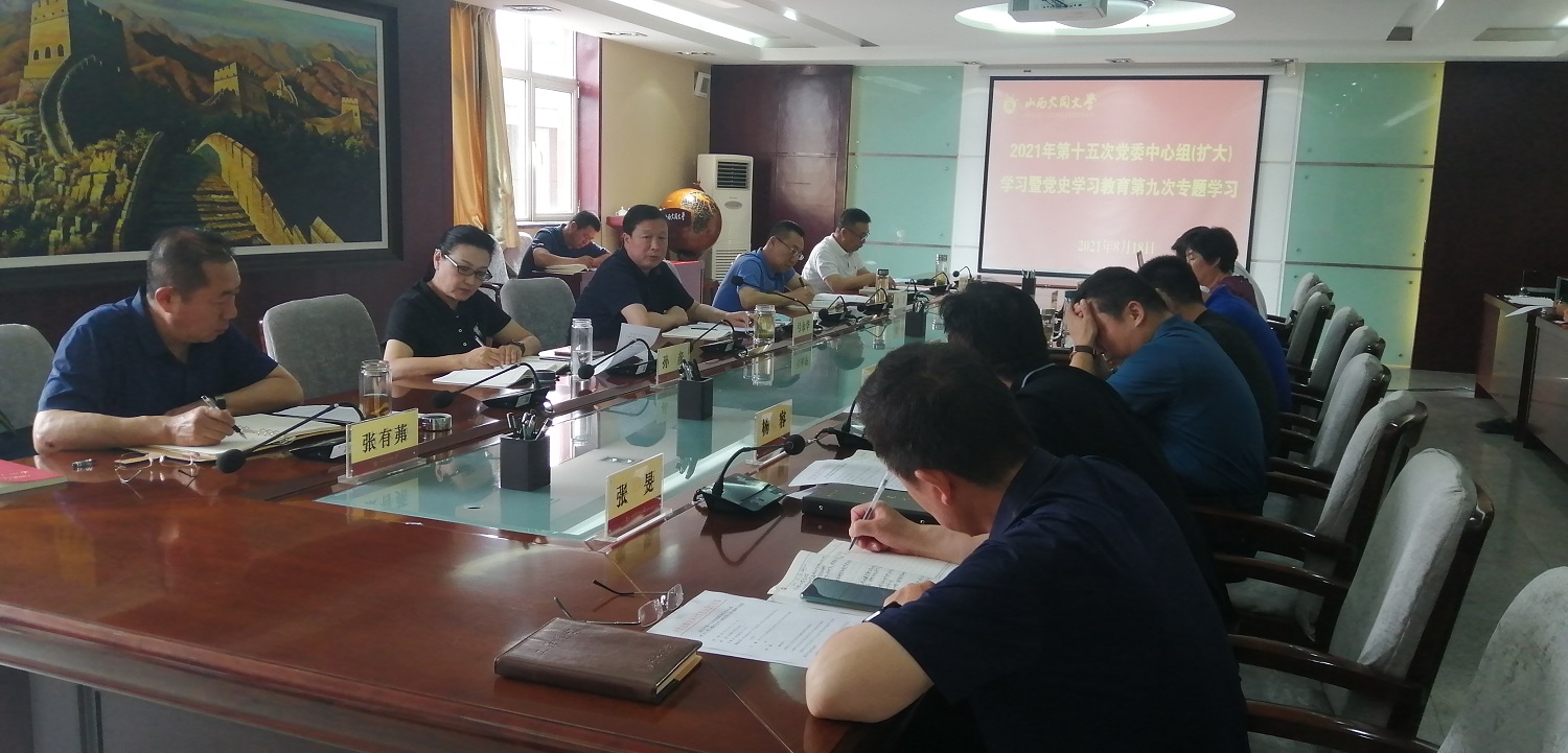 ? 8月18日上午,我校召開2021年第十五次黨委理論學習中心組(擴大)學習暨黨史學習教育第九次專題學習會,深入學習貫徹習近平總書記在西藏考察時的重要講話精神、主持召開中共中央政治局會議精神、給“國際青年領袖對話”項目外籍青年代表回信精神,學習貫徹《求是》雜志發表的習近平總書記《學史明理、學史增信、學史崇德、學史力行》重要文章精神。校黨委書記弓永華主持學習并講話。