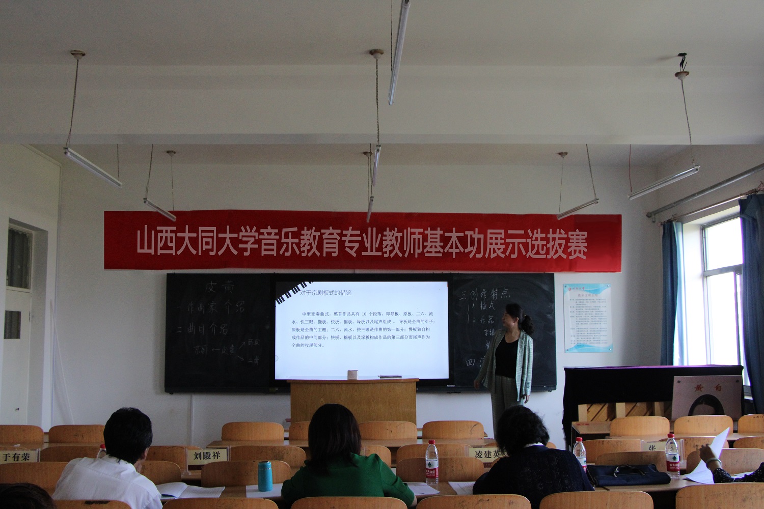經過音樂學院層層選拔,最終有5位教師參賽。比賽共分兩場進行,上半場為教學展示,下半場為專業展示,擔任本次比賽的評委由我校教師發展中心、云岡文化研究中心、文學院、馬克思主義學院、音樂學院及音樂學院教研室負責人組成。