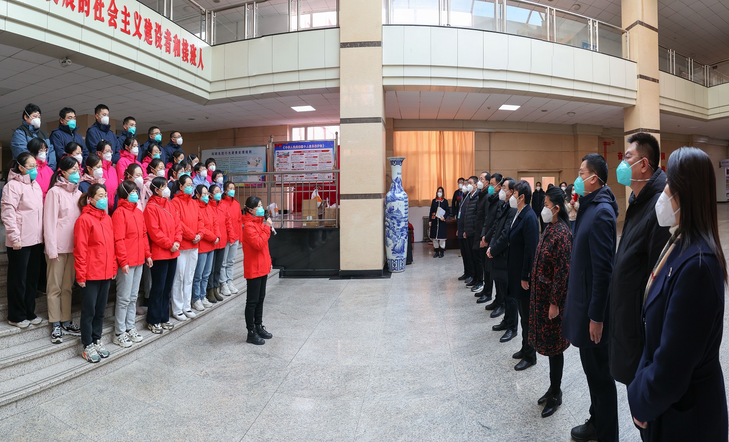 疫情就是命令,防控就是責任。11月29日,大同市第五人民醫院(山西大同大學附屬第一醫院)核酸檢測醫療隊在圓滿完成支援我校疫情防控工作后,即將離校返回工作崗位。臨行前,學校為援校醫療隊舉行了返程歡送儀式。校黨委書記趙水民,校黨委副書記、校長姚麗英以及其他在校校領導出席儀式。校黨委副書記寇福明主持儀式。