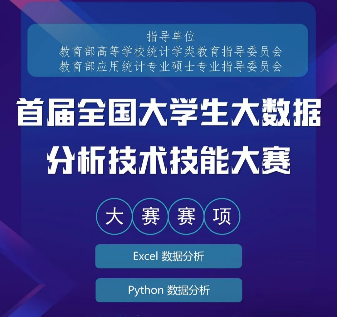 全國大學生大數據分析技術技能大賽是為深入貫徹落實習近平總書記對技能人才工作的系列重要指示,推進實施國家大數據戰略,由教育部高等學校統計學類教育指導委員會、教育部應用統計專業碩士專業指導委員會共同指導,面向全國普通本科和高職在校學生的全國性賽事。大賽分為兩個賽項:Excel數據分析和Python數據分析,競賽以“大數據分析技術技能”為主題,將深度還原的實際應用場景作為賽題,旨在工業4.0背景下,提升參賽選手的數據素養和運用大數據技術分析解決實際問題的綜合能力,培養學生計算思維、創新意識和科學素養,提升學生的就業競爭力。