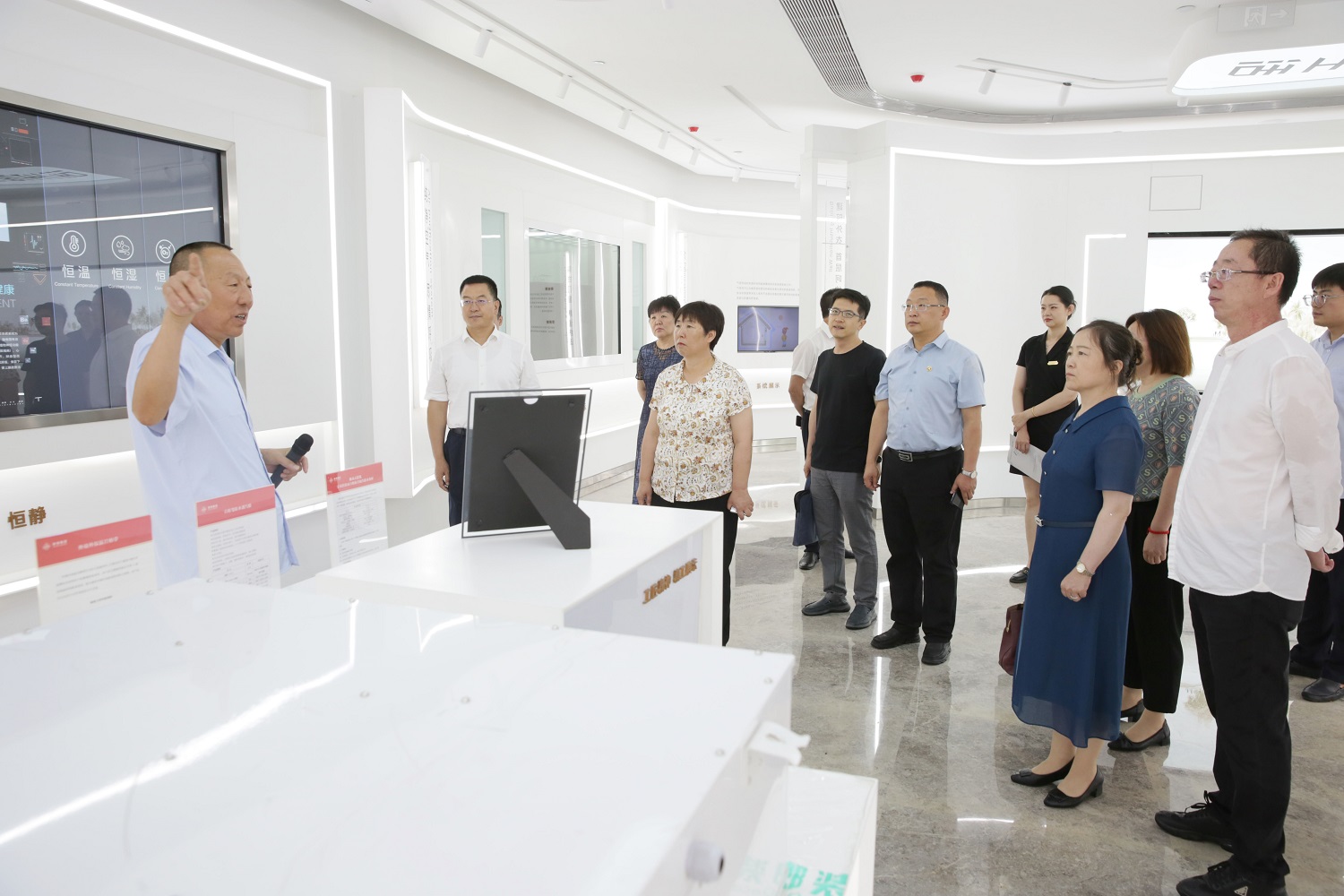 隨后,姚麗英一行來到大同泰瑞集團,先后考察了泰瑞集團旗下的云山府、國家級裝配產業園區、瑞鋮鋼結構有限公司、天質檢測檢驗有限公司、大同市總工會工匠學院等。泰瑞集團董事局主席張廣忠,副總裁、瑞城產業園區董事長、大同市總工會工匠學院院長張擴忠參加調研。
